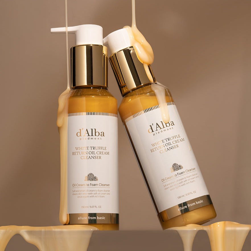 d'Alba's White Truffle Return Oil Cream Cleanser is an all-in-one makeup remover and cleansing cream, cleansing foam and cleansing oil. This versatile cleanser harnesses the dual capabilities of oil and cream to efficiently eliminate impurities while delivering profound hydration and promoting a luminous complexion.